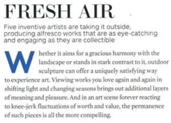 But outdoor art often requires a special kind of collector. “Anyone can buy a 30-inch painting,” says Candace Worth, a New York art adviser who is always on the lookout for pieces that could work en plein air. “The people who buy outdoor sculpture are on another level entirely.