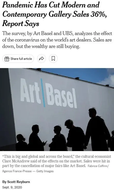 “Ninety-two percent seems a big number,” said Candace Worth, a New York-based adviser specializing in contemporary art. “But collectors have been buying online and have been taking appointments with galleries all summer. People are stuck at home, bored and itching to spend money on art,” Ms. Worth said.